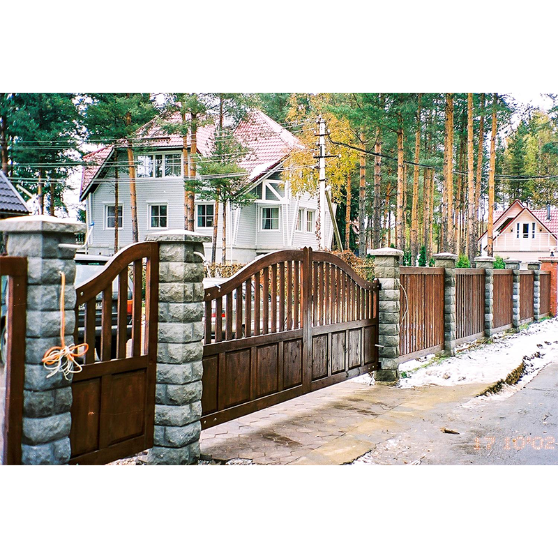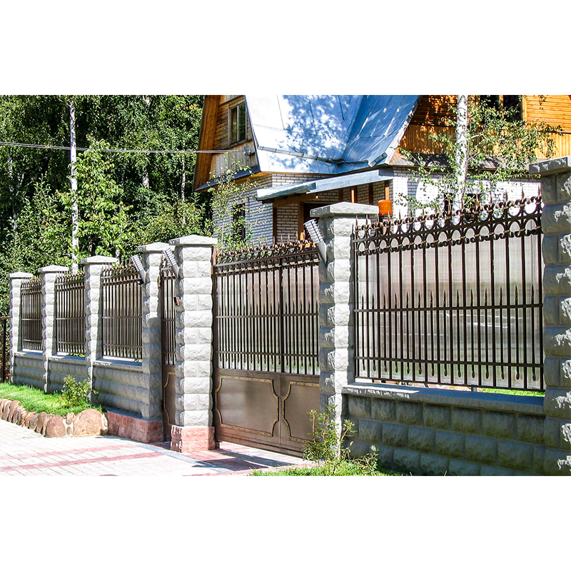 Блоки представляют собой декоративную несъемную опалубку.Продукция отличается четкой проработкой деталей фактуры, благодаря чему создается идентичность облицовки натуральными материалами.Установка блоков обходится намного дешевле, чем устройство кирпичного забора той же высоты. После монтажа забора блоки окрашиваются фасадной краской по бетону в цвет, который более всего подходит вашему дому.Внутри полых блоков удобно монтировать кабель-каналы для установки освещения, звонков, камер наблюдения и т.д. Такого рода заборы являются единой монолитной конструкцией, устойчивой к механическим воздействиям.