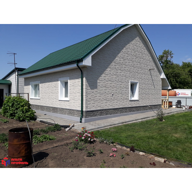 Александр Дунай 10.10.2021 Кровля у нас серого цвета, поэтому для цоколя понравилась коллекция Фагот цвет Раменский. Думали, может потемнее взять, но решили, что цветы и декоративные кустарники, которые растут по периметру дома, на светлом фоне будут замечательно выделяться. Получилось здорово! )))