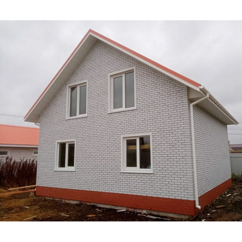Фасадная панель под натуральный кирпич с имитацией ложковой кладки из коллекции BERG от Деке. Фактурная поверхность и белые контрастные швы придают панелям максимальное сходство с натуральным кирпичом. Панель изготовлена из полипропилена методом литья под давлением, имеет небольшой вес, поэтому не создает дополнительной нагрузки на несущие конструкции. За счет специальной трехступенчатой системы окраски, материал невосприимчив к УФ-лучам и атмосферным осадкам. Конструкция панели усилена ребрами жесткости, что обеспечивает повышенную устойчивость к механическим нагрузкам. Панели легко и надежно скрепляются между собой, монтируются на обрешетку. Монтаж можно производить в любое время года, за исключением сильных морозов (не ниже -15°С) Фасадные панели могут использоваться как для оформления фасада целиком, так и для облицовки фундамента, выделения отдельных деталей. Фасадные панели под кирпич BERG от Docke — это практичное и стильное решение с гарантией производителя 50 лет! Предлагаем также все необходимые комплектующие для панелей Деке, которые придадут законченный внешний облик и дополнительный шарм фасаду. Купить фасадную панель под натуральный кирпич BERG Кирпичный от производителя Деке по выгодной цене вы можете в нашем интернет-магазине Удачная покупка. Наши опытные менеджеры рассчитают необходимое количество материала и помогут с выбором комплектующих.