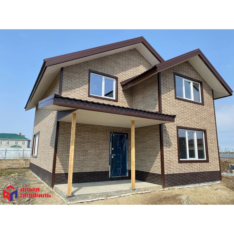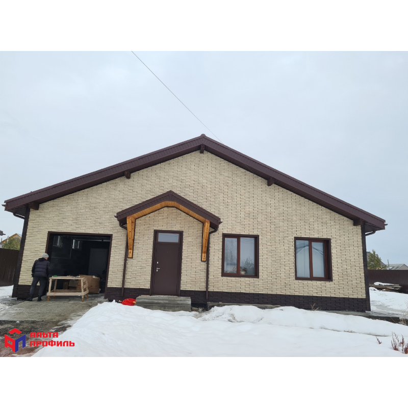 Виктор Выборг 20.02.2022 Очень интересная коллекция у Альта Профиль. Идеально подошла к дизайну дома. И по размерам удобно монтировать. Высота 0,51 м. Оформили цоколь коричневым отливом. Результатом довольны. Надежно защищает цоколь.