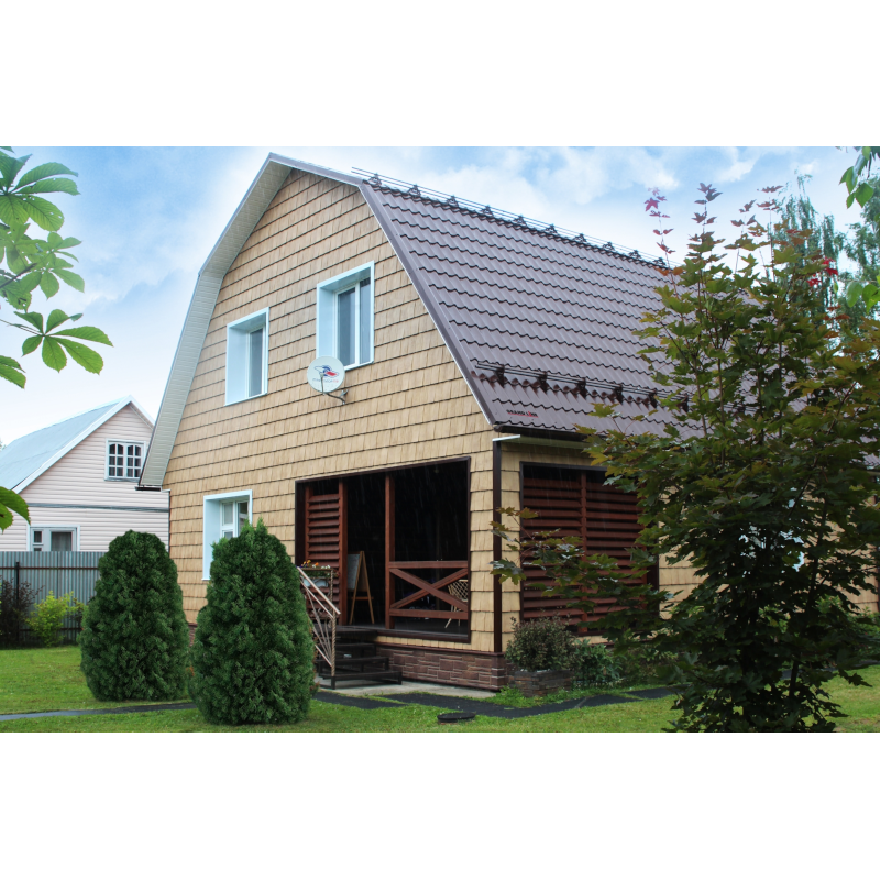 Иван Сергеевич Тосно 23.04.2020 Для ремонта своего дома я выбрал виниловый сайдинг, но еще ломал голову как сделать фасад не обычным и интересным. В итоге на фронтоны я купил фасадные панели в виде дранки, увидел я такое решение в каталоге красивых домов. Ее понадобилось совсем не много и стоимость совсем не значительно увеличилась. Дом сразу заиграл, хоть кино снимай. Голливуд)