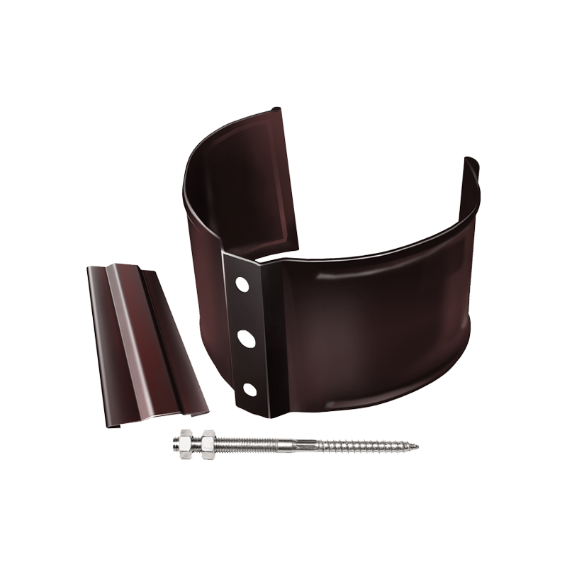 Хомут трубы на кирпич D100 мм коричневый RAL8017 с покрытием Granite Double от Гранд Лайн. Используется для фиксации водосточной трубы на стенах строений. Поставляется в комплекте с крепежом для кирпича. Металлический водосток круглого сечения D150/100 с покрытием Granite Double от Гранд Лайн. Водосточная система Гранд Лайн D150/100 обладает большой пропускной способностью и подходит для кровель большой площади. Достаточно одной воронки на 15 п.м. карниза, что позволяет существенно сократить расходы на трубы и колена. Водосточная система изготовлена из холоднокатаной горячеоцинкованной стали толщиной от 0,5 мм и произведена по ведущим европейским технологиям. Все элементы водостока имеют покрытие на основе полиуретана с внешней и внутренней стороны, что значительно повышает долговечность системы. Покрытие Granite отличается повышенной стойкостью к УФ-лучам, агрессивным химическим веществам, механическим повреждениям и коррозии, превосходит по своим параметрам покрытия из полиэстера и пластизола. Водосток обладает высокой цветостойкостью, не выгорает. Устойчив к большим температурным перепадам ( -60 до +120°C). Водосток Гранд Лайн служит для организации стока осадков с поверхности кровли и отвода их на грунт или систему ливневой канализации. При организованном стоке воды сохраняется привлекательный вид фасада, а фундамент защищен от преждевременного разрушения. Купить хомут трубы на кирпич D100 мм коричневый RAL8017 с покрытием Granite Double от производителя Гранд Лайн недорого вы можете в нашем интернет-магазине Удачная покупка. Наши менеджеры помогут с выбором и рассчитают необходимое количество элементов водостока.