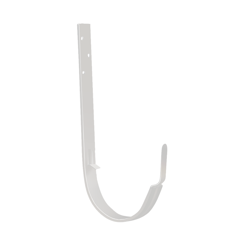 Кронштейн желоба D150 мм белый RAL9003 с покрытием Granite Double от Гранд Лайн. Кронштейн используется для фиксации водосточного желоба и монтируется под кровлю. Устанавливаются перед монтажом кровли.. Металлический водосток круглого сечения D150/100 с покрытием Granite Double от Гранд Лайн. Водосточная система Гранд Лайн D150/100 обладает большой пропускной способностью и подходит для кровель большой площади. Достаточно одной воронки на 15 п.м. карниза, что позволяет существенно сократить расходы на трубы и колена. Водосточная система изготовлена из холоднокатаной горячеоцинкованной стали толщиной от 0,5 мм и произведена по ведущим европейским технологиям. Все элементы водостока имеют покрытие на основе полиуретана с внешней и внутренней стороны, что значительно повышает долговечность системы. Покрытие Granite отличается повышенной стойкостью к УФ-лучам, агрессивным химическим веществам, механическим повреждениям и коррозии, превосходит по своим параметрам покрытия из полиэстера и пластизола. Водосток обладает высокой цветостойкостью, не выгорает. Устойчив к большим температурным перепадам ( -60 до +120°C). Водосток Гранд Лайн служит для организации стока осадков с поверхности кровли и отвода их на грунт или систему ливневой канализации. При организованном стоке воды сохраняется привлекательный вид фасада, а фундамент защищен от преждевременного разрушения. Купить кронштейн желоба D150 мм белый RAL9003 с покрытием Granite Double от производителя Гранд Лайн по низкой цене вы можете в нашем интернет-магазине Удачная покупка. Наши менеджеры помогут с выбором и рассчитают необходимое количество элементов водостока.