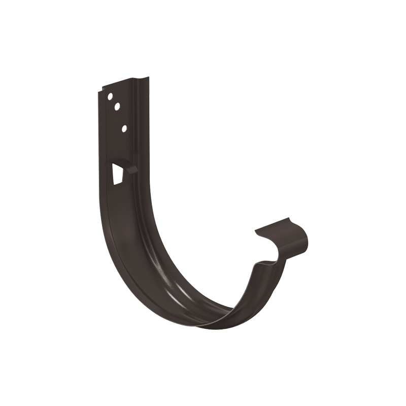 Кронштейн желоба универсальный D150 мм RAL8017 Коричневый с покрытием Полиуретан (PUR) от производителя Аквасистем. Кронштейн используется для фиксации водосточного желоба и монтируется на лобовую доску. Также возможна его установка и без лобовой доски, для этого используется удлинитель крюка. Металлический водосток Аквасистем размерностью 150/100 обладает большой пропускной способностью и подходит для кровель большой площади. Водосточная система Аквасистем изготовлена из премиальной марки оцинкованной стали. Имеет многоуровневую двухстороннюю защиту стали от ржавчины и коррозии: цинк (275 гр\м2), пассивирующий слой, грунт, глянцевое покрытие Полиуретан (PUR) толщиной 50 мкм. Полимерное полиуретановое покрытие обладает высокой стойкостью к ультрафиолетовому излучению, механическим повреждениям и коррозии, не выгорает, максимально устойчиво к царапинам. Водосток устойчив к большим температурным перепадам ( -60 до +120°C). Строгий дизайн и палитра самых популярных оттенков водостоков Аквасистем идеально сочетаются с любым фасадом и кровлей. ТЕХНИЧЕСКИЕ ПРЕИМУЩЕСТВА ВОДОСТОКОВ АКВАСИСТЕМ: – Конструкция кронштейна желоба исключает смещение желоба под нагрузкой, существенно увеличивает прочность водосточной системы. – Трубы имеют внешний раструб – максимальная пропускная способность. Оснащены внутренним замком – максимальная прочность на разрыв. – Хомут трубы с дополнительными ребрами жесткости – надежная фиксация водосточной трубы. – Угол желоба без сварного шва – увеличивает долговечность изделия. – Соединитель желоба с универсальным замком и дополнительным элементом жесткости. – Колена имеют боковой стыковочный шов (выше линии потока воды) – увеличивает долговечность изделия. – Идеальная стыковка элементов – высокоточная геометрия. Увеличенная гарантия на отсутствие сквозной коррозии – 30 лет, на стойкость покрытия – 15 лет! Купить кронштейн желоба универсальный D150 мм RAL8017 Коричневый с покрытием Полиуретан (PUR) от Аквасистем по низкой цене вы можете в нашем интернет-магазине Удачная покупка. Наши менеджеры помогут с выбором и рассчитают необходимое количество элементов водостока.