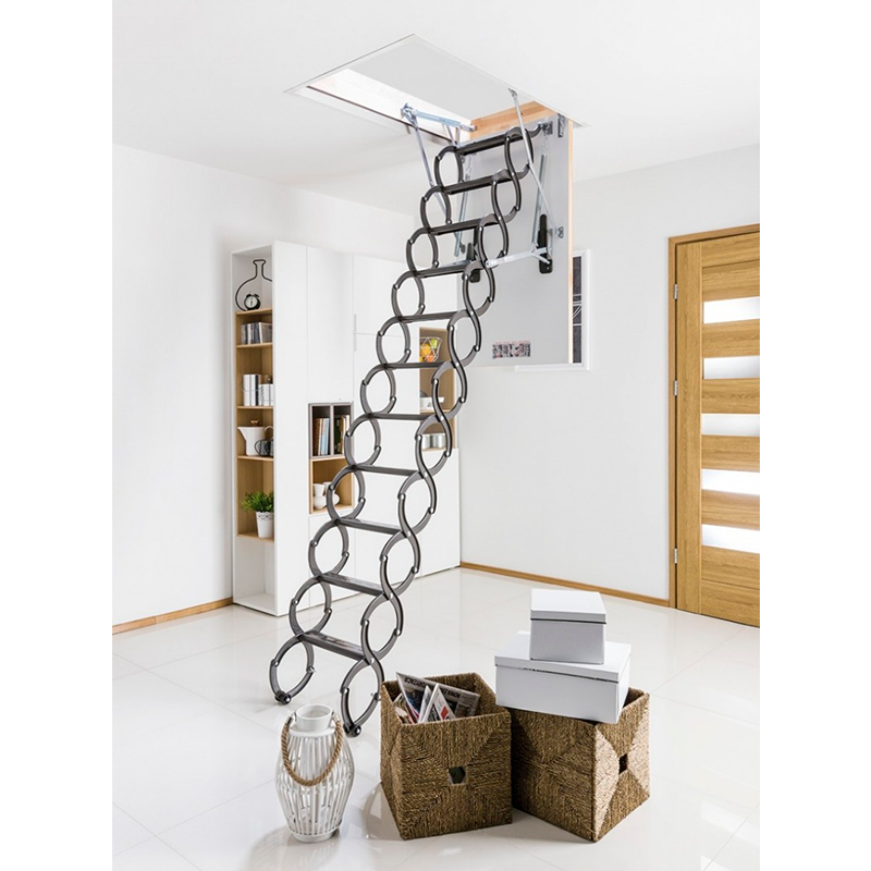 Сергей В Всеволожск 02.12.2020 В сложенном виде лестница очень компактна и имеет небольшой размер крышки люка. Боковые элементы лестницы, выполненные в форме буквы S, придают лестнице современный вид, выполняя одновременно роль поручней. Лестница проста и удобна в использовании.Для нашего потолка 3.1м.она была немного маловата,докупали 2доп.ступеньки,все встало на свои места.Выгядит очень надежной и одновременно стильной,мы довольны.