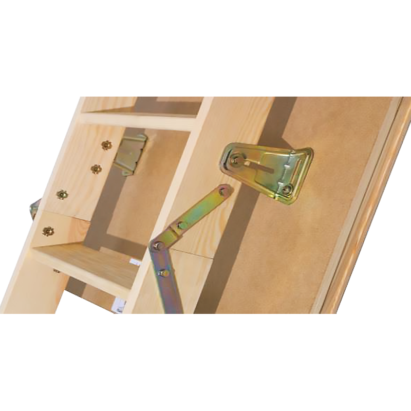 Комплектация и параметры лестниц LWK полностью соответствуют характеристикам лестниц Fakro LWK Plus с двумя отличиями: способ крепления лестничного марша и цвет поручня (черный). Лестничный марш в модели LWK крепится к крышке люка, а не к коробу. Такая конструкция гарантирует дополнительную устойчивость. Петли-шарниры позволяют регулировать положение марша относительно крышки люка при подрезке нижнего сегмента (не более 40 мм!).