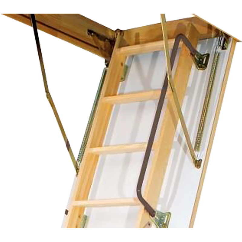 Комплектация и параметры лестниц LWK полностью соответствуют характеристикам лестниц Fakro LWK Plus с двумя отличиями: способ крепления лестничного марша и цвет поручня (черный). Лестничный марш в модели LWK крепится к крышке люка, а не к коробу. Такая конструкция гарантирует дополнительную устойчивость. Петли-шарниры позволяют регулировать положение марша относительно крышки люка при подрезке нижнего сегмента (не более 40 мм!)