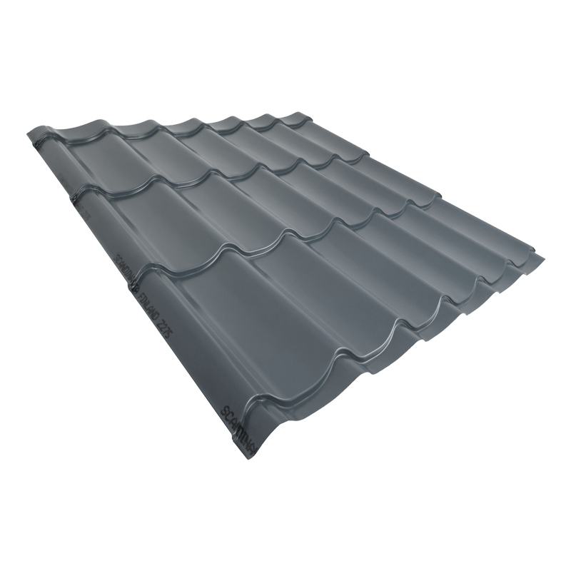Металлочерепица Scandinavia (Скандинавия) с глянцевым покрытием Полиэстер, толщиной стали 0,5 мм. Производится из оцинкованной стали оптимальной толщины, достаточной для качественного профилирования. Слой цинка обеспечивает надежную защиту металлочерепицы от образования ржавчины и коррозии. Экономичное и универсальное покрытие Полиэстер толщиной 25 мкм устойчиво к перепадам температур и подходит для любых климатических зон. Обладает хорошей стойкостью цвета. Хорошо зарекомендовало себя благодаря своим характеристикам и невысокой стоимости. Популярный профиль в форме бегущей волны является классикой и идеально гармонирует с любым архитектурным стилем дома. Металлическая черепица Scandinavia выпускается в нескольких вариантах, с длиной листа 470, 1170, 2220 и 3620 мм. Удобные размеры позволяют использовать металлочерепицу на кровлях любой площади и конфигурации, сокращают количество обрезков кровельного материала, а также ускоряют и упрощают монтаж. Металлочерепица Скандинавия представлена в наиболее распространенных цветах, используемые для кровли. Оттенки из палитры RR отличаются природным скандинавским спокойствием. Серая кровля является одной из наиболее популярных, т.к. прекрасно гармонирует со всеми оттенками фасадных материалов. Дома с металлочерепицей в цвете RR23 Темно-серый выглядят богато и благородно особенно в контрастном сочетании с синими, зелеными и белыми оттенками фасадов. Купить металлочерепицу Скандинавия 0,5 мм Полиэстер в цвете RR23 с длиной листа 1170 мм по приятной цене вы можете в нашем интернет-магазине Удачная покупка. Наши менеджеры произведут расчет кровельного материала и необходимых комплектующих.