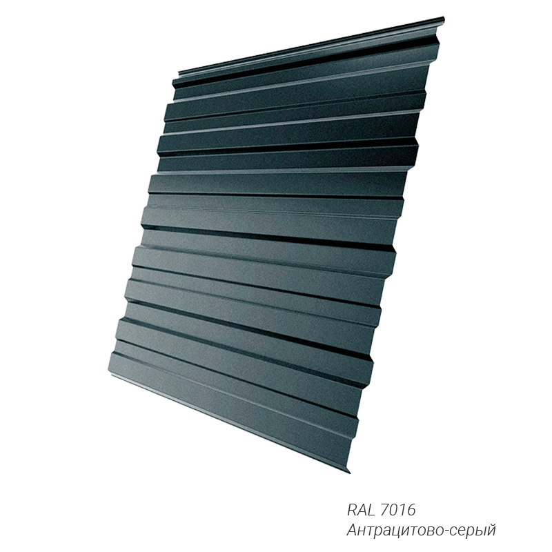 Профнастил имеет профиль C10R (высотой 10 мм). Толщина стали составляет 0,45 мм. Колеровка — заказная. Можно подобрать идеальный цвет для любого проекта.