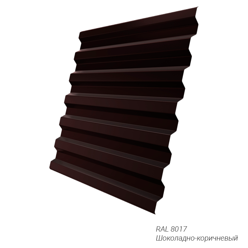 Профнастил имеет профиль C21R (высотой 21 мм). Толщина стали составляет 0,5 мм. Колеровка — заказная. Можно подобрать идеальный цвет для любого проекта.