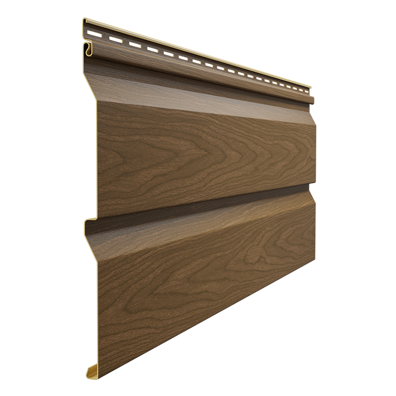 При производстве сайдинга и комплектующих LUX D5D (профиль Корабельный брус) используются уникальные технологии нанесения краски. Внешняя поверхность цвета Миндаль получается как у натурального дерева.