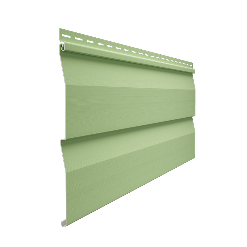 Сайдинг Docke D4.5D в сочном оттенке Киви — оптимальное соотношение цены и качества. В отличие от коллекций Premium серия Standard предлагает более компактные панели, что упрощает монтаж на фасадах любой площади. Материал устойчив к ультрафиолету, не деформируется со временем и выдерживает температуры от -40°C до +50°C.