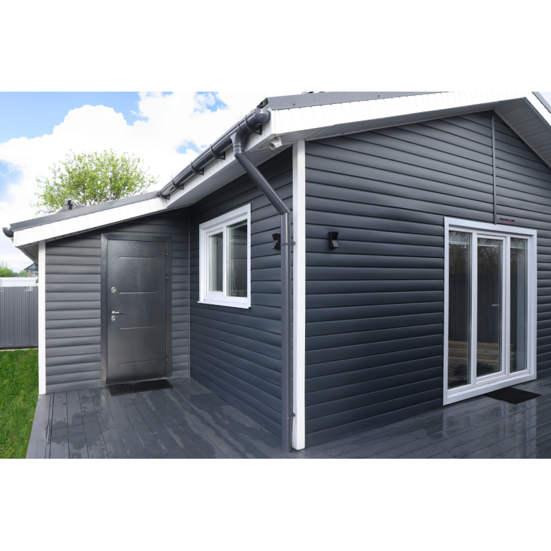 Ирина СНТ Осинка 13.12.2021 Запланировала зашить фронтоны дома в насыщенном, ярком цвете. В магазине посоветовали сайдинг графит в сочетании с белыми комплектующими. Обрадовало, что у Гранд Лайна этот сайдинг акриловый. Значит долго будет держать цвет. Получилось очень красиво. Спасибо за совет! )))