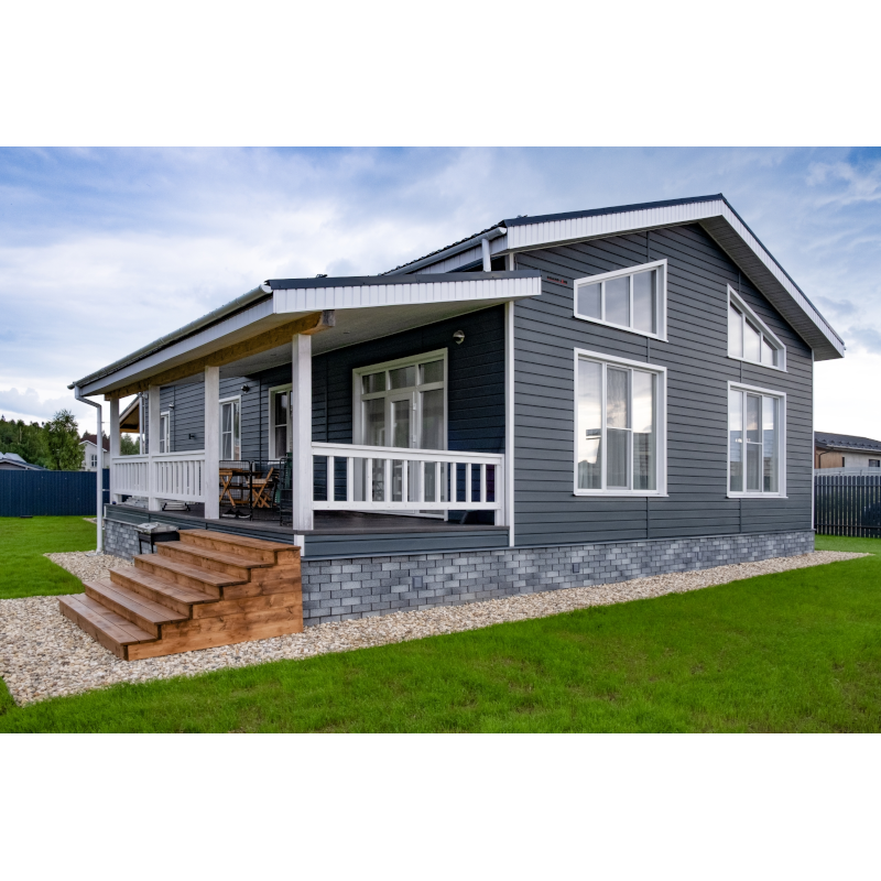 Сайдинг серии Double-брус с увеличенной шириной панели (полная ширина 324 мм, рабочая 291 мм) можно монтировать и горизонтально, и вертикально. Форма и текстура поверхности сайдинга Дабл-брус достоверно имитирует клееный брус. А цвет Графит коллекции Акрил Premuim с улучшенной формулой окраски идеально подойдет для создания фасада в скандинавском стиле. К сайдингу Double-брус конструктивно подходят все стандартные аксессуары сайдинга Grand Line в виниле или акриле.