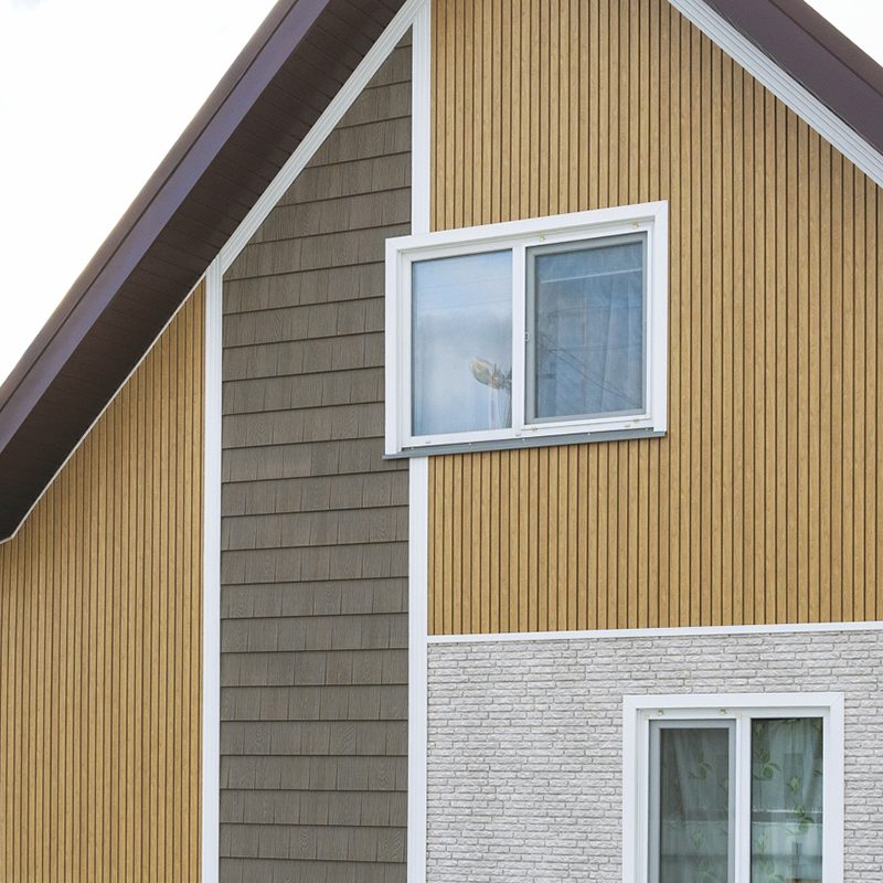 Планкен Тимберблок от Ю-Пласт — новая коллекция панелей для наружной обшивки фасада дома. Цвет Кленовый достоверно имитирует текстуру тонированной древесины. Строгая форма линий визуально не нагружает фасад. Отличительная особенность коллекции Планкен — панели могут быть смонтированы как горизонтально при обшивке больших площадей, так и вертикально для создания акцента на фасаде. Коллекция комплектуется необходимыми аксессуарами (J-профиль, внешний угол, стыковочный H-профиль) в цвет панелей. Универсальность решений от Ю-Пласт гарантирует сочетаемость коллекции Планкен со всеми фасадными материалами производителя.