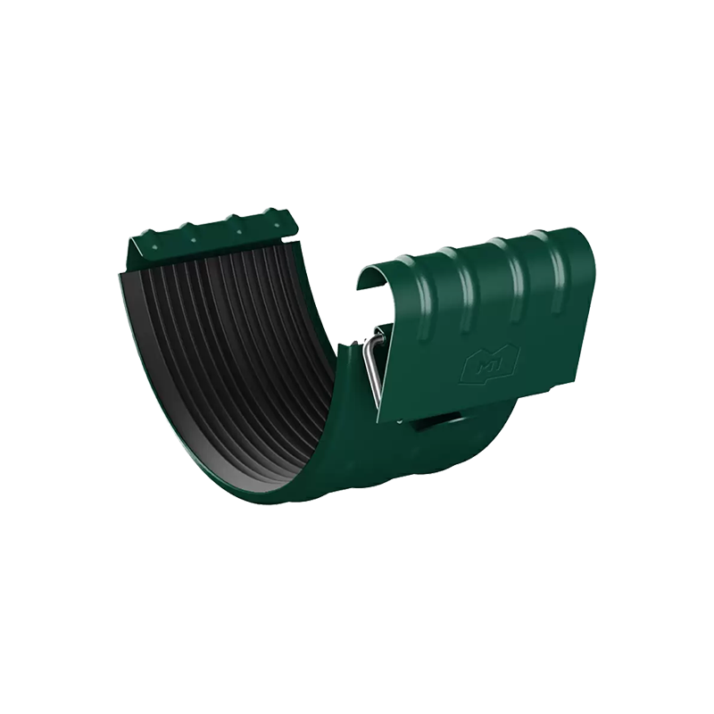Соединитель желоба D150 мм зеленый RAL6005 с покрытием Пластизол серии МП Престиж от Металл Профиль. Устанавливается в местах соединения водосточных желобов, используется для герметизации стыков и придает дополнительную прочность водостоку. Металлический водосток круглого сечения с двухсторонним покрытием Пластизол (PVC) серии МП Престиж от Металл Профиль. ОСОБЕННОСТИ: – Элементы водостока изготовлены из оцинкованной стали толщиной от 0,5 мм, что обеспечивает высокую жесткость водосточной системы – Выдерживает значительные нагрузки (лёд, снег, мелкие животные) – Многоуровневая защита стали от ржавчины и коррозии: грунт, цинк, пассивирующий слой, двухстороннее гладкое глянцевое покрытие Пластизол (PVC) толщиной 100 мкм – Стойкость к большим температурным перепадам (водосток не трескается в мороз и не деформируется в жару) – Стойкость к химическим веществам – Круглое сечение (обладает наименьшим сопротивлением потоку воды) – Размерность системы D150/100 отличается хорошей пропускной способностью и успешно справляется с нагрузками – Высокая прочность комплектующих элементов и крепежа – Широкая палитра цветов – Срок службы до 50 лет. Водосточная система МП Престиж D150/100 подходит для устройства водоотвода с кровель больших площадей. Водосток служит для защиты фасада и фундамента строения от осадков. Обеспечивает отвод воды, предотвращая разрушение фундамента, подтопление подвалов. Продлевает срок службы фасадных материалов. А также является средством сбора дождевой воды для последующего ее использования. Купить соединитель желоба D150 мм зеленый RAL6005 с покрытием Пластизол от производителя Металл Профиль по доступной цене вы можете в нашем интернет-магазине Удачная покупка. Наши менеджеры помогут с выбором и рассчитают необходимое количество элементов водостока.