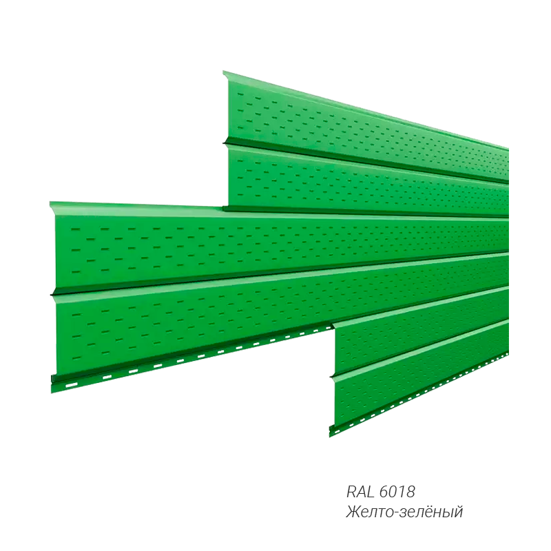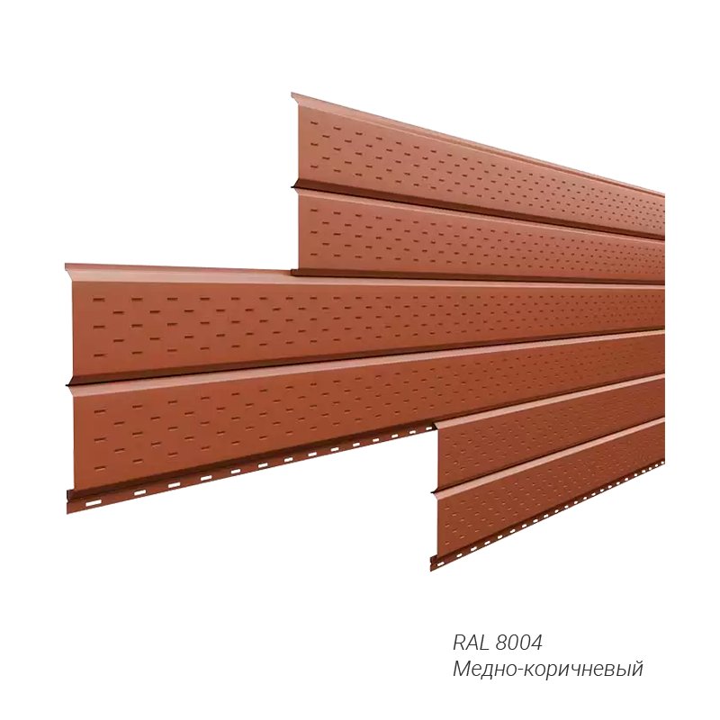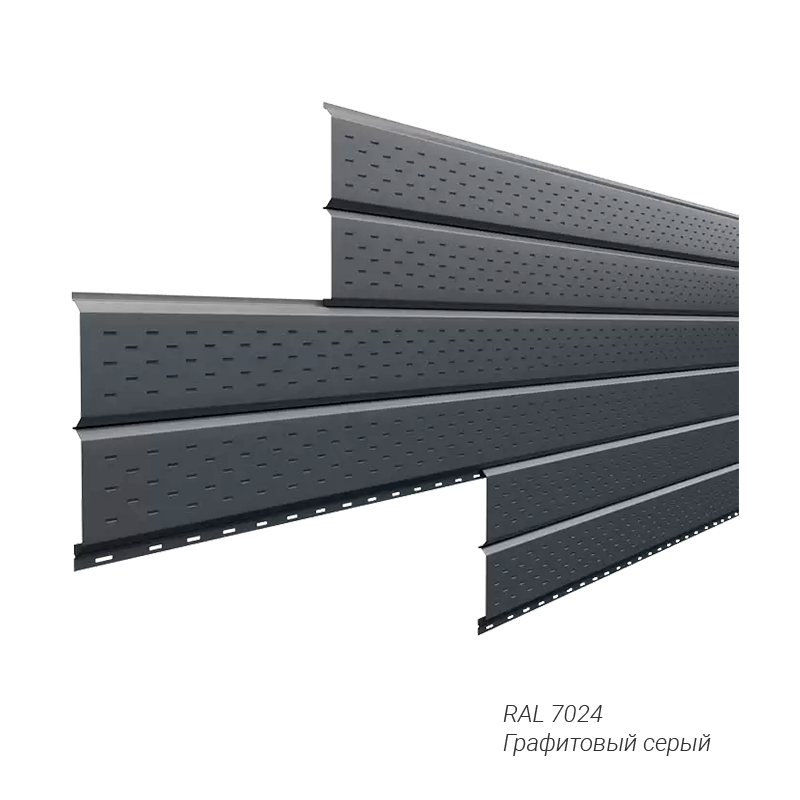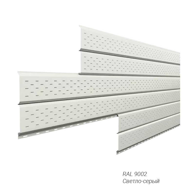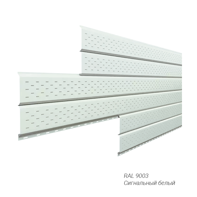 Софит с перфорацией L-брус Металл Профиль 0,5 мм покрытие NormanMP заказной цвет — оригинальное и надежное решение для оформления свесов. Не требует особого ухода, может устанавливаться в любое время года, легко монтируется.