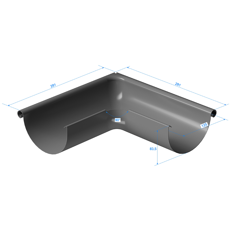 Угол желоба внешний 90° Docke STAL PREMIUM D125 RAL9010 Пломбир