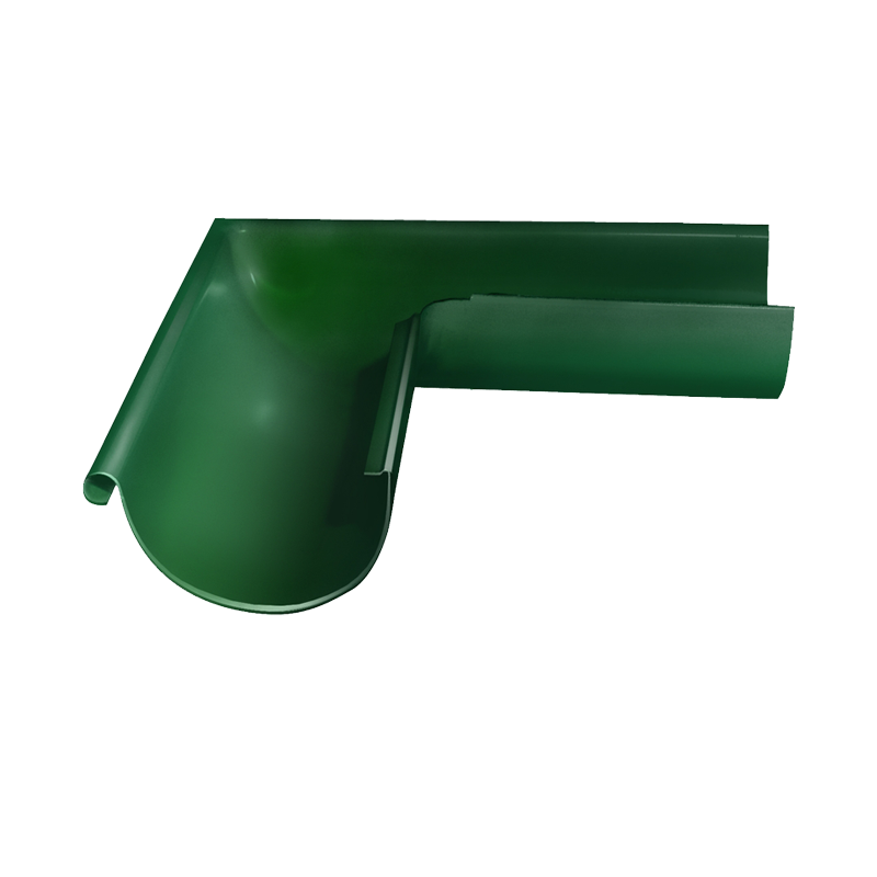 Угол желоба внешний D125 мм 90° зеленый RAL6005 с покрытием Granite Double от Гранд Лайн. Предназначен для соединения водосточных желобов под углом 90 градусов, для смены направления движения воды в стоке. Обеспечивает непрерывность линии водостока. Устанавливается на наружных/выступающих углах здания. Металлический водосток круглого сечения D125/90 с покрытием Granite Double от Гранд Лайн. Водосточная система изготовлена из холоднокатаной горячеоцинкованной стали толщиной от 0,5 мм и произведена по ведущим европейским технологиям. Все элементы водостока имеют покрытие на основе полиуретана с внешней и внутренней стороны, что значительно повышает долговечность системы. Покрытие Granite отличается повышенной стойкостью к УФ-лучам, агрессивным химическим веществам, механическим повреждениям и коррозии, превосходит по своим параметрам покрытия из полиэстера и пластизола. Водосток обладает высокой цветостойкостью, не выгорает. Устойчив к большим температурным перепадам ( -60 до +120°C). Водосточная система Гранд Лайн D125/90 обладает глубоким желобом, что увеличивает ее пропускную способность, предотвращает перелив воды через край, а также делает ее менее засоряемой. Водосток отлично справляется с отводом осадков с кровли площадью до 100 м². Водосток Гранд Лайн служит для организации стока осадков с поверхности кровли и отвода их на грунт или систему ливневой канализации. При организованном стоке воды сохраняется привлекательный вид фасада, а фундамент защищен от преждевременного разрушения. Купить угол желоба внешний D125 мм 90° зеленый RAL6005 с покрытием Granite Double от производителя Гранд Лайн по низкой цене вы можете в нашем интернет-магазине Удачная покупка. Наши менеджеры помогут с выбором и рассчитают необходимое количество элементов водостока.