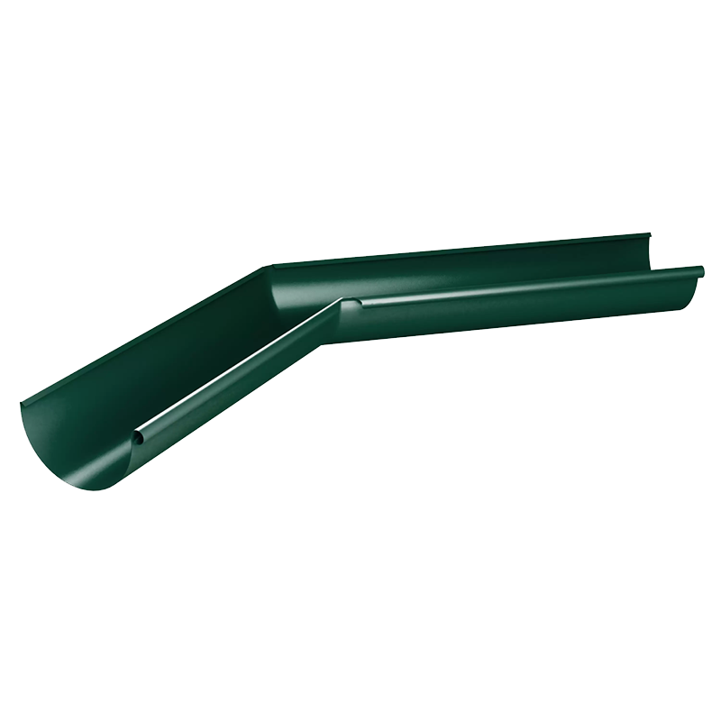 Угол желоба внутренний D125 мм 135° зеленый RAL6005 с покрытием Пластизол серии МП Престиж от Металл Профиль. Предназначен для соединения водосточных желобов под углом 135 градусов, для смены направления движения воды в стоке. Обеспечивает непрерывность линии водостока. Устанавливается на внутренних углах здания. Металлический водосток круглого сечения с двухсторонним покрытием Пластизол (PVC) серии МП Престиж от Металл Профиль. ОСОБЕННОСТИ: – Элементы водостока изготовлены из оцинкованной стали толщиной от 0,5 мм, что обеспечивает высокую жесткость водосточной системы – Выдерживает значительные нагрузки (лёд, снег, мелкие животные) – Многоуровневая защита стали от ржавчины и коррозии: грунт, цинк, пассивирующий слой, двухстороннее гладкое глянцевое покрытие Пластизол (PVC) толщиной 100 мкм – Стойкость к большим температурным перепадам (водосток не трескается в мороз и не деформируется в жару) – Стойкость к химическим веществам – Круглое сечение (обладает наименьшим сопротивлением потоку воды) – Размерность системы D125/100 отличается хорошей пропускной способностью и успешно справляется с нагрузками – Высокая прочность комплектующих элементов и крепежа – Широкая палитра цветов – Срок службы до 50 лет. Водосточная система МП Престиж D125/100 — оптимальный вариант для устройства водоотвода с крыши загородного дома. Водосток служит для защиты фасада и фундамента строения от осадков. Обеспечивает отвод воды, предотвращая разрушение фундамента, подтопление подвалов. Продлевает срок службы фасадных материалов. А также является средством сбора дождевой воды для последующего ее использования. Купить угол желоба внутренний D125 мм 135° зеленый RAL6005 с покрытием Пластизол от производителя Металл Профиль по доступной цене вы можете в нашем интернет-магазине Удачная покупка. Наши менеджеры помогут с выбором и рассчитают необходимое количество элементов водостока.