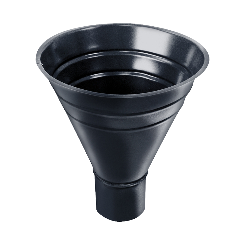 Воронка водосборная D125/90 мм темно-серая RAL7024 с покрытием Granite Double от Гранд Лайн. Элемент водосточной системы, применяется для сбора воды со сложных форм крыш, фальцевых кровель, в тех случаях, когда сток не организован посредством желоба. Металлический водосток круглого сечения D125/90 с покрытием Granite Double от Гранд Лайн. Водосточная система изготовлена из холоднокатаной горячеоцинкованной стали толщиной от 0,5 мм и произведена по ведущим европейским технологиям. Все элементы водостока имеют покрытие на основе полиуретана с внешней и внутренней стороны, что значительно повышает долговечность системы. Покрытие Granite отличается повышенной стойкостью к УФ-лучам, агрессивным химическим веществам, механическим повреждениям и коррозии, превосходит по своим параметрам покрытия из полиэстера и пластизола. Водосток обладает высокой цветостойкостью, не выгорает. Устойчив к большим температурным перепадам ( -60 до +120°C). Водосточная система Гранд Лайн D125/90 обладает глубоким желобом, что увеличивает ее пропускную способность, предотвращает перелив воды через край, а также делает ее менее засоряемой. Водосток отлично справляется с отводом осадков с кровли площадью до 100 м². Водосток Гранд Лайн служит для организации стока осадков с поверхности кровли и отвода их на грунт или систему ливневой канализации. При организованном стоке воды сохраняется привлекательный вид фасада, а фундамент защищен от преждевременного разрушения. Купить воронку водосборную D125/90 мм темно-серую RAL7024 с покрытием Granite Double от производителя Гранд Лайн по низкой цене вы можете в нашем интернет-магазине Удачная покупка. Наши менеджеры помогут с выбором и рассчитают необходимое количество элементов водостока.