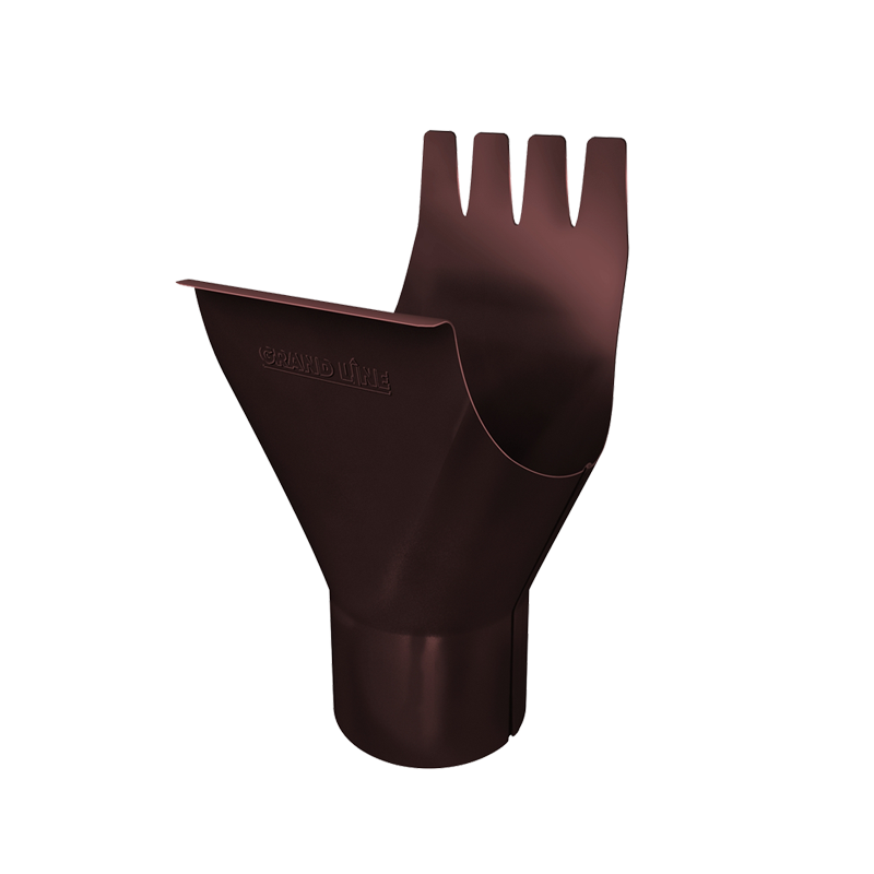 Воронка выпускная D150/100 мм коричневая RAL8017 с покрытием Granite Double от Гранд Лайн. Элемент водосточной системы, устанавливается в водосточный желоб и служит для отвода воды из желобов в водосточную трубу. Металлический водосток круглого сечения D150/100 с покрытием Granite Double от Гранд Лайн. Водосточная система Гранд Лайн D150/100 обладает большой пропускной способностью и подходит для кровель большой площади. Достаточно одной воронки на 15 п.м. карниза, что позволяет существенно сократить расходы на трубы и колена. Водосточная система изготовлена из холоднокатаной горячеоцинкованной стали толщиной от 0,5 мм и произведена по ведущим европейским технологиям. Все элементы водостока имеют покрытие на основе полиуретана с внешней и внутренней стороны, что значительно повышает долговечность системы. Покрытие Granite отличается повышенной стойкостью к УФ-лучам, агрессивным химическим веществам, механическим повреждениям и коррозии, превосходит по своим параметрам покрытия из полиэстера и пластизола. Водосток обладает высокой цветостойкостью, не выгорает. Устойчив к большим температурным перепадам ( -60 до +120°C). Водосток Гранд Лайн служит для организации стока осадков с поверхности кровли и отвода их на грунт или систему ливневой канализации. При организованном стоке воды сохраняется привлекательный вид фасада, а фундамент защищен от преждевременного разрушения. Купить воронку выпускную D150/100 мм коричневую RAL8017 с покрытием Granite Double от производителя Гранд Лайн по низкой цене вы можете в нашем интернет-магазине Удачная покупка. Наши менеджеры помогут с выбором и рассчитают необходимое количество элементов водостока.