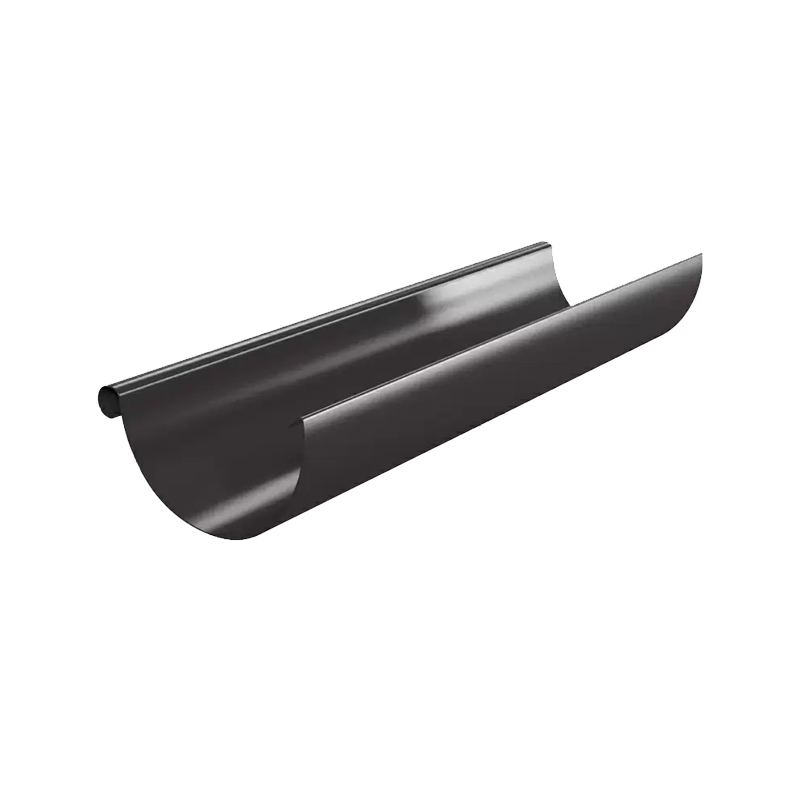 Желоб водосточный D125 мм длиной 3 м коричневый RR32 с покрытием Пластизол серии МП Престиж от Металл Профиль. Является основным элементом водосточной системы, крепиться под скат кровли. Собирает и направляет дождевую воду с крыши строения в водосточную трубу. Металлический водосток круглого сечения с двухсторонним покрытием Пластизол (PVC) серии МП Престиж от Металл Профиль. ОСОБЕННОСТИ: – Элементы водостока изготовлены из оцинкованной стали толщиной от 0,5 мм, что обеспечивает высокую жесткость водосточной системы – Выдерживает значительные нагрузки (лёд, снег, мелкие животные) – Многоуровневая защита стали от ржавчины и коррозии: грунт, цинк, пассивирующий слой, двухстороннее гладкое глянцевое покрытие Пластизол (PVC) толщиной 100 мкм – Стойкость к большим температурным перепадам (водосток не трескается в мороз и не деформируется в жару) – Стойкость к химическим веществам – Круглое сечение (обладает наименьшим сопротивлением потоку воды) – Размерность системы D125/100 отличается хорошей пропускной способностью и успешно справляется с нагрузками – Высокая прочность комплектующих элементов и крепежа – Широкая палитра цветов – Срок службы до 50 лет. Водосточная система МП Престиж D125/100 — оптимальный вариант для устройства водоотвода с крыши загородного дома. Водосток служит для защиты фасада и фундамента строения от осадков. Обеспечивает отвод воды, предотвращая разрушение фундамента, подтопление подвалов. Продлевает срок службы фасадных материалов. А также является средством сбора дождевой воды для последующего ее использования. Купить желоб водосточный D125 мм коричневый RR32 с покрытием Пластизол от производителя Металл Профиль по низкой цене вы можете в нашем интернет-магазине Удачная покупка. Наши менеджеры помогут с выбором и рассчитают необходимое количество элементов водостока.